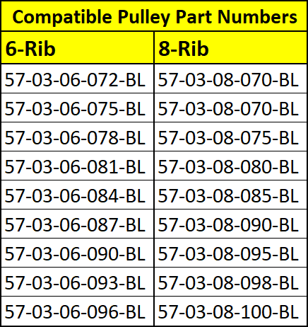 *Pulley Sold Separately. See fitment tab for available pulley options